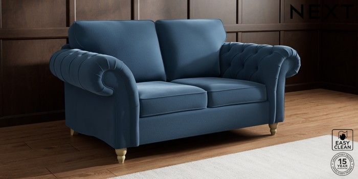 7.2.10 Gosford Highback II Deep Sit 2 Seater Sofa Plush Velvet Easy Clean Airforce Blue Low Turned - Light | Made Click here to use our website with more accessibility support, for example screen readers