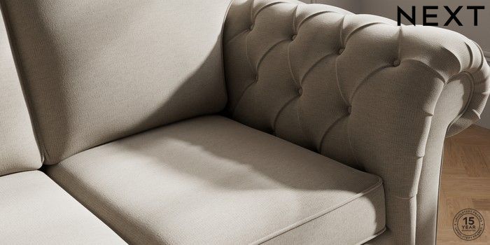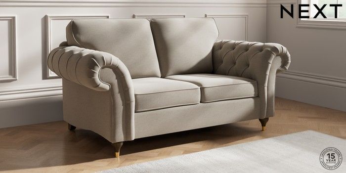 7.2.10 Gosford Highback II Deep Sit 2 Seater Sofa Ripple Chenille Light Natural Modern Turned Metal Cap - Mid | Made Click here to use our website with more accessibility support, for example screen readers