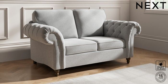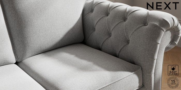 7.2.10 Gosford Highback II Deep Sit 2 Seater Sofa Tweedy Blend Easy Clean Light Silver Grey Low Turned - Mid | Made Click here to use our website with more accessibility support, for example screen readers