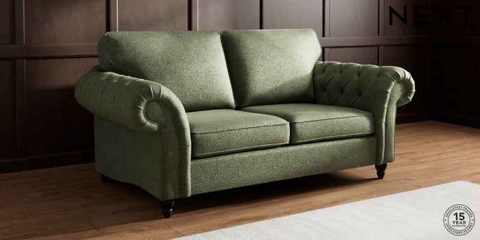 7.2.10 Gosford Highback II Deep Sit 3 Seater Small Sofa Boucle Chenille Dark Moss Green Low Turned - Dark | Made Click here to use our website with more accessibility support, for example screen readers