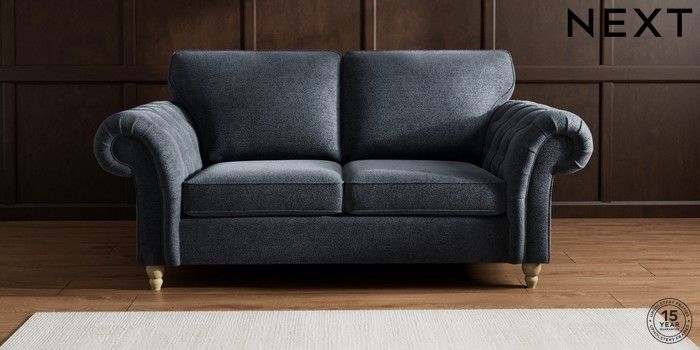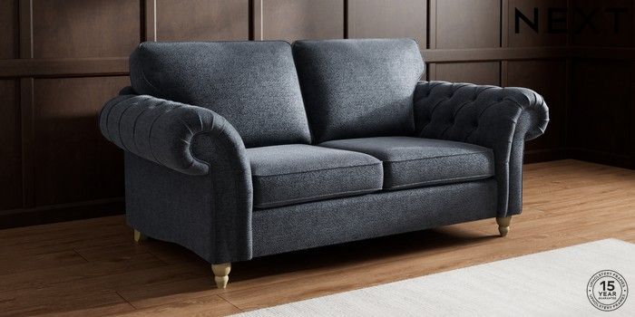 7.2.10 Gosford Highback II Deep Sit 3 Seater Small Sofa Boucle Chenille Dark Slate Blue Low Turned - Light | Made Click here to use our website with more accessibility support, for example screen readers