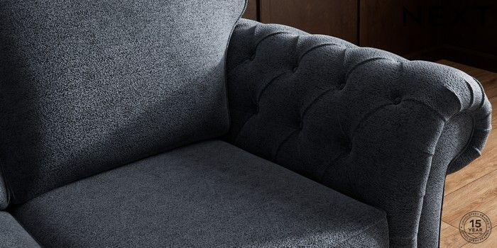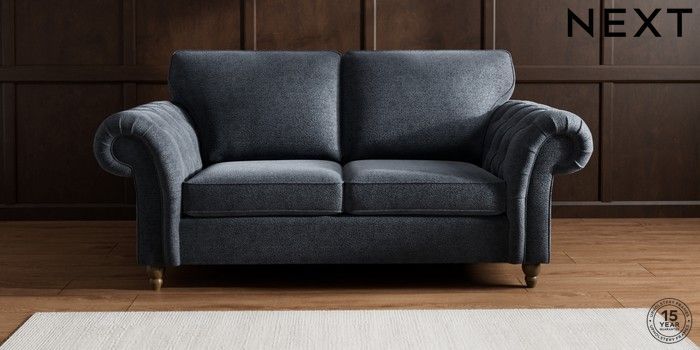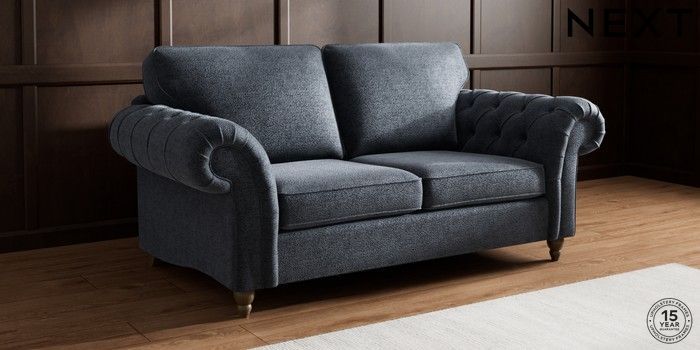 7.2.10 Gosford Highback II Deep Sit 3 Seater Small Sofa Boucle Chenille Dark Slate Blue Low Turned - Mid | Made Click here to use our website with more accessibility support, for example screen readers