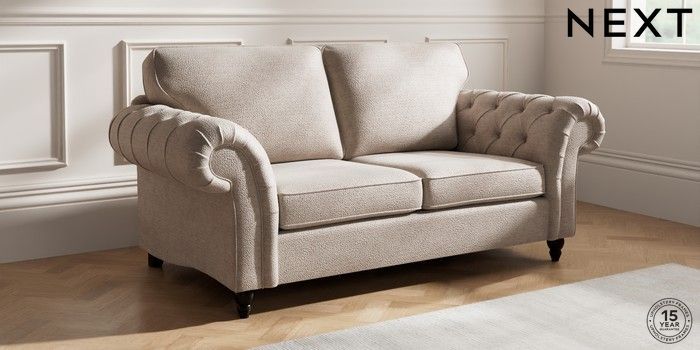 7.2.10 Gosford Highback II Deep Sit 3 Seater Small Sofa Boucle Chenille Light Natural Low Turned - Dark | Made Click here to use our website with more accessibility support, for example screen readers