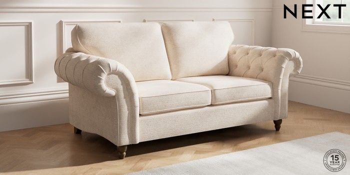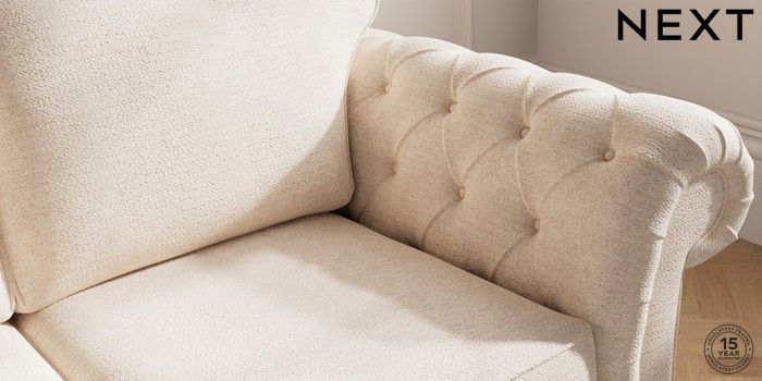 7.2.10 Gosford Highback II Deep Sit 3 Seater Small Sofa Boucle Chenille Oyster Low Turned - Mid | Made Click here to use our website with more accessibility support, for example screen readers