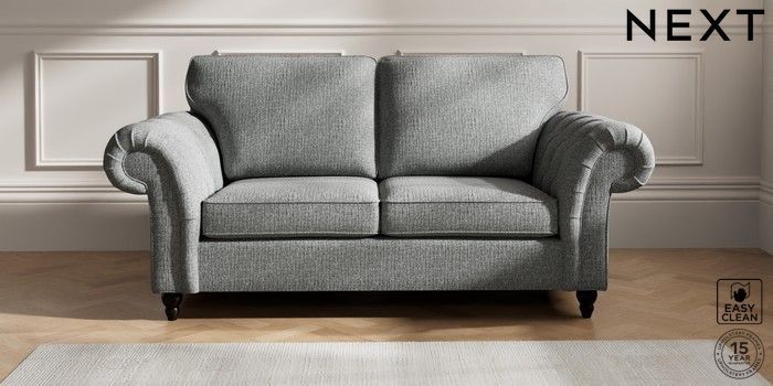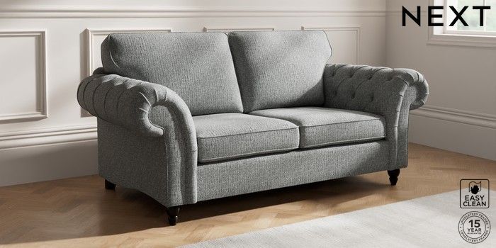 7.2.10 Gosford Highback II Deep Sit 3 Seater Small Sofa Chunky Boucle Easy Clean Mid Grey Low Turned - Dark | Made Click here to use our website with more accessibility support, for example screen readers