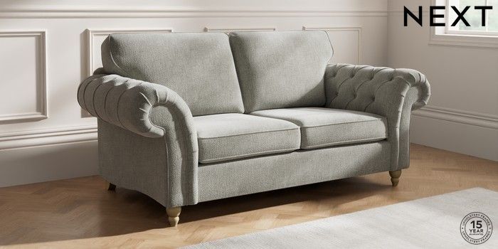7.2.10 Gosford Highback II Deep Sit 3 Seater Small Sofa Chunky Chenille Light Grey Low Turned - Light | Made Click here to use our website with more accessibility support, for example screen readers