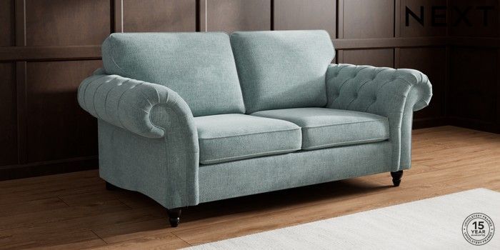 7.2.10 Gosford Highback II Deep Sit 3 Seater Small Sofa Chunky Chenille Light Teal Green Low Turned - Dark | Made Click here to use our website with more accessibility support, for example screen readers