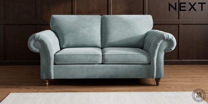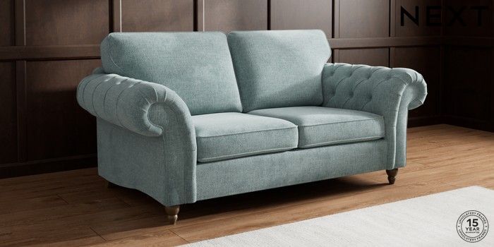 7.2.10 Gosford Highback II Deep Sit 3 Seater Small Sofa Chunky Chenille Light Teal Green Low Turned - Mid | Made Click here to use our website with more accessibility support, for example screen readers