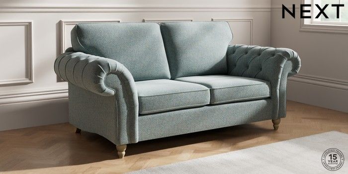 7.2.10 Gosford Highback II Deep Sit 3 Seater Small Sofa Chunky Marl Mid Blue Low Turned - Light | Made Click here to use our website with more accessibility support, for example screen readers