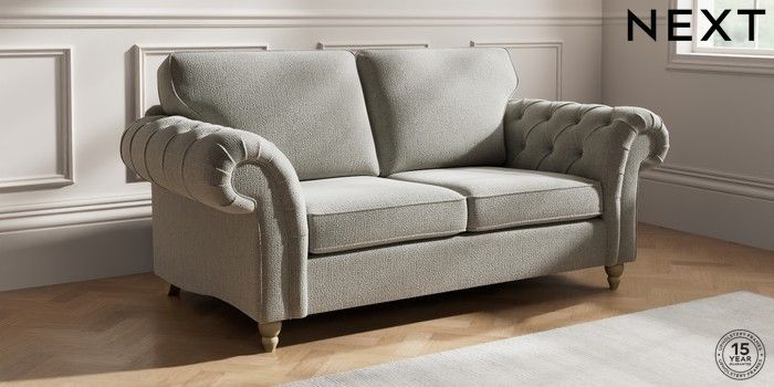 7.2.10 Gosford Highback II Deep Sit 3 Seater Small Sofa Chunky Texture Dove Low Turned - Light | Made Click here to use our website with more accessibility support, for example screen readers