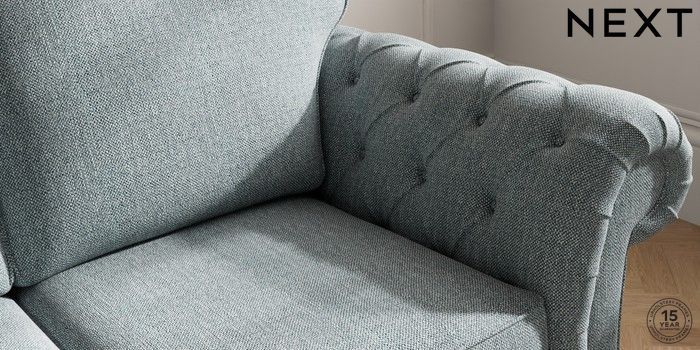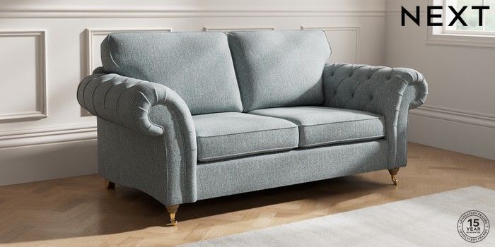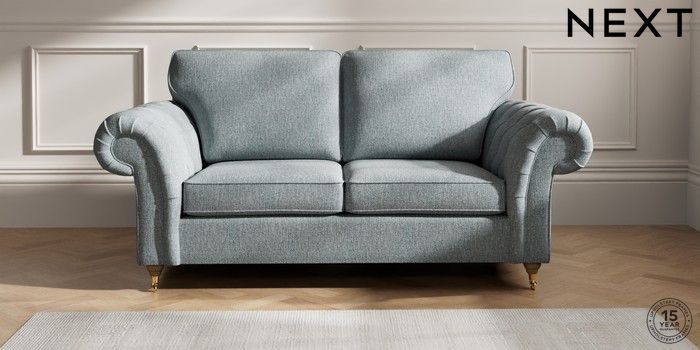 7.2.10 Gosford Highback II Deep Sit 3 Seater Small Sofa Chunky Weave Mid Blue Castor - Light | Made Click here to use our website with more accessibility support, for example screen readers