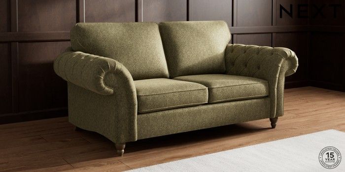7.2.10 Gosford Highback II Deep Sit 3 Seater Small Sofa Cotswold Chenille Dark Green Low Turned - Mid | Made Click here to use our website with more accessibility support, for example screen readers