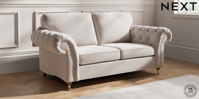 7.2.10 Gosford Highback II Deep Sit 3 Seater Small Sofa Cotswold Chenille Oyster Castor - Light | Made Click here to use our website with more accessibility support, for example screen readers