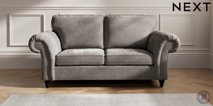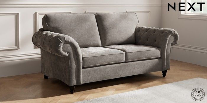 7.2.10 Gosford Highback II Deep Sit 3 Seater Small Sofa Distressed Velour French Grey Low Turned - Dark | Made Click here to use our website with more accessibility support, for example screen readers