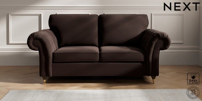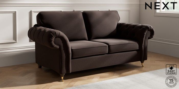 7.2.10 Gosford Highback II Deep Sit 3 Seater Small Sofa Fine Chenille Easy Clean Chocolate Brown Castor - Mid | Made Click here to use our website with more accessibility support, for example screen readers