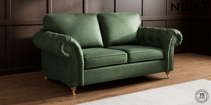 7.2.10 Gosford Highback II Deep Sit 3 Seater Small Sofa Luxe Chenille Dark Green Castor - Light | Made Click here to use our website with more accessibility support, for example screen readers