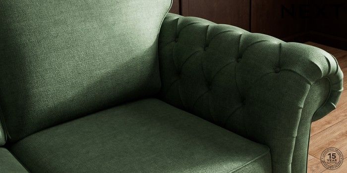 7.2.10 Gosford Highback II Deep Sit 3 Seater Small Sofa Luxe Chenille Dark Green Low Turned - Dark | Made Click here to use our website with more accessibility support, for example screen readers