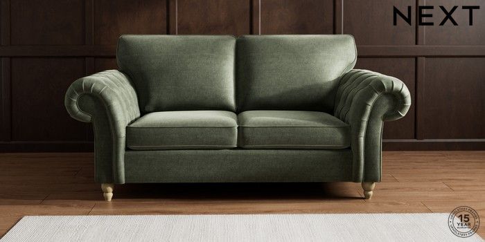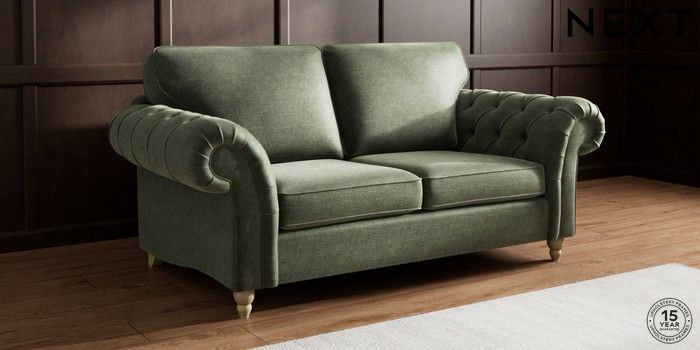 7.2.10 Gosford Highback II Deep Sit 3 Seater Small Sofa Luxe Chenille Mid Green Low Turned - Light | Made Click here to use our website with more accessibility support, for example screen readers