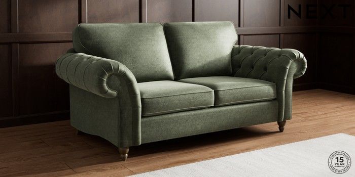 7.2.10 Gosford Highback II Deep Sit 3 Seater Small Sofa Luxe Chenille Mid Green Low Turned - Mid | Made Click here to use our website with more accessibility support, for example screen readers