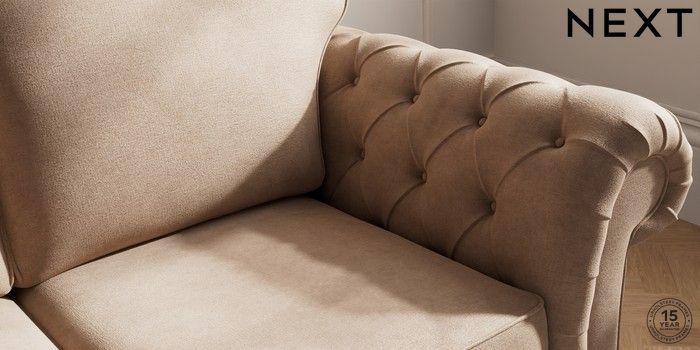 7.2.10 Gosford Highback II Deep Sit 3 Seater Small Sofa Luxe Chenille Mid Natural Low Turned - Dark | Made Click here to use our website with more accessibility support, for example screen readers