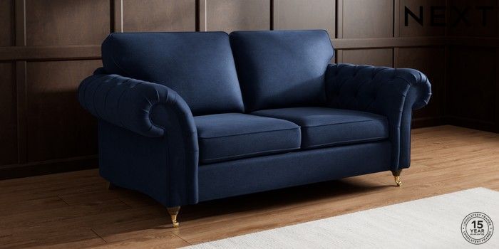 7.2.10 Gosford Highback II Deep Sit 3 Seater Small Sofa Luxe Chenille Navy Blue Castor - Mid | Made Click here to use our website with more accessibility support, for example screen readers