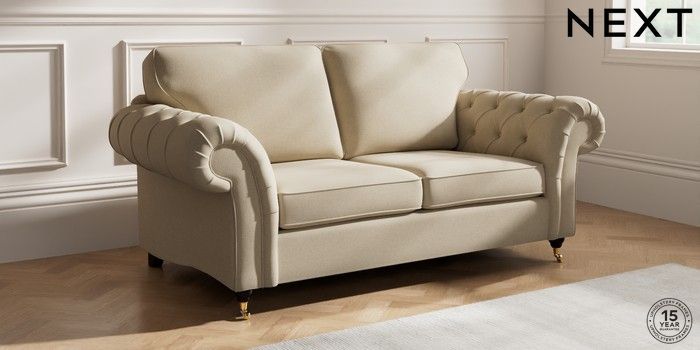 7.2.10 Gosford Highback II Deep Sit 3 Seater Small Sofa Natural Mix Light Natural Castor - Dark | Made Click here to use our website with more accessibility support, for example screen readers