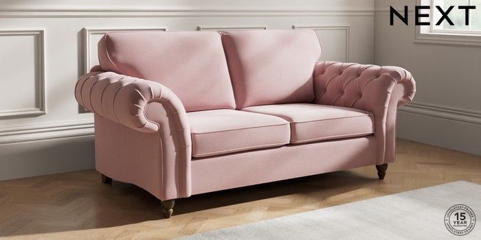 7.2.10 Gosford Highback II Deep Sit 3 Seater Small Sofa Natural Mix Light Rose Pink Low Turned - Mid | Made Click here to use our website with more accessibility support, for example screen readers