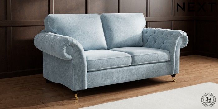 7.2.10 Gosford Highback II Deep Sit 3 Seater Small Sofa Plush Chenille Light Blue Castor - Dark | Made Click here to use our website with more accessibility support, for example screen readers