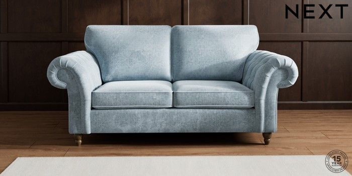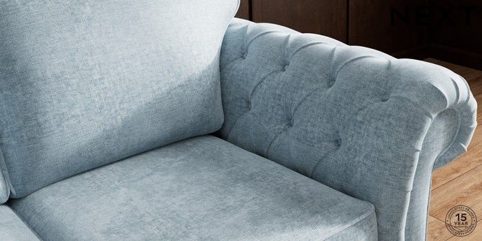 7.2.10 Gosford Highback II Deep Sit 3 Seater Small Sofa Plush Chenille Light Blue Low Turned - Mid | Made Click here to use our website with more accessibility support, for example screen readers