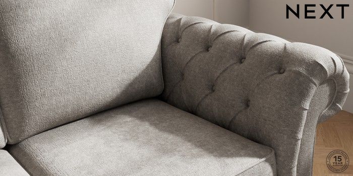 7.2.10 Gosford Highback II Deep Sit 3 Seater Small Sofa Plush Chenille Light Grey Castor - Light | Made Click here to use our website with more accessibility support, for example screen readers