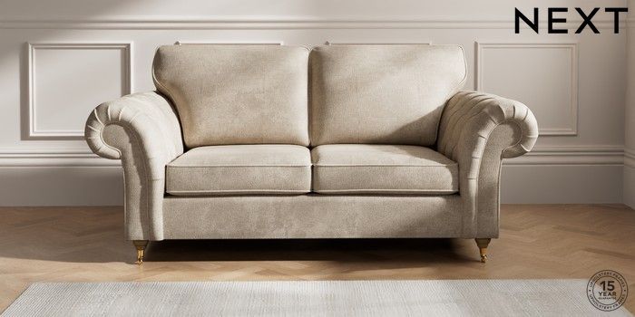 7.2.10 Gosford Highback II Deep Sit 3 Seater Small Sofa Plush Chenille Light Natural Castor - Light | Made Click here to use our website with more accessibility support, for example screen readers