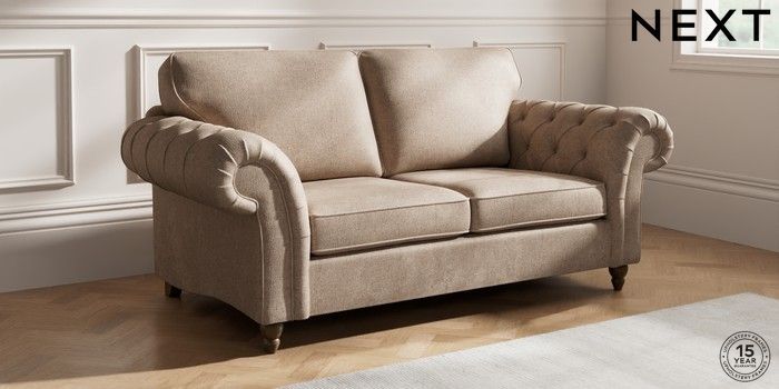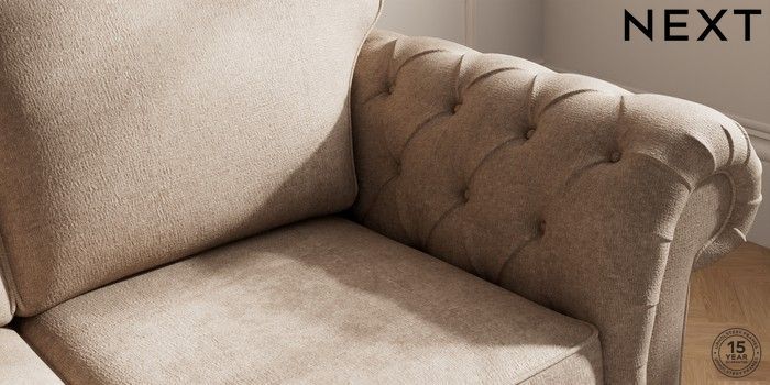 7.2.10 Gosford Highback II Deep Sit 3 Seater Small Sofa Plush Chenille Mid Natural Low Turned - Mid | Made Click here to use our website with more accessibility support, for example screen readers