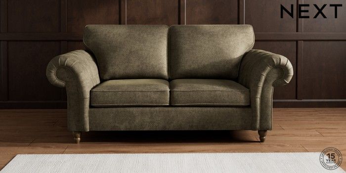 7.2.10 Gosford Highback II Deep Sit 3 Seater Small Sofa Plush Chenille Moss Green Low Turned - Mid | Made Click here to use our website with more accessibility support, for example screen readers