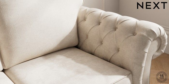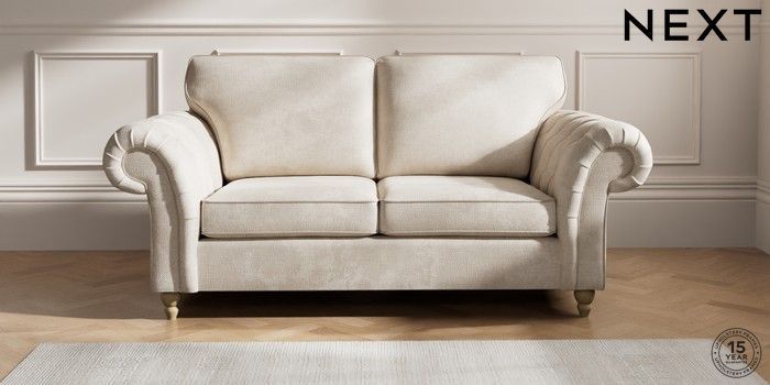 7.2.10 Gosford Highback II Deep Sit 3 Seater Small Sofa Plush Chenille Oyster Low Turned - Light | Made Click here to use our website with more accessibility support, for example screen readers