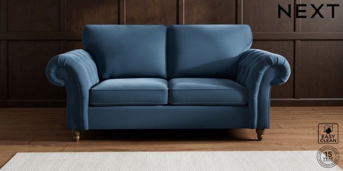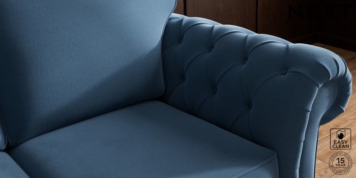 7.2.10 Gosford Highback II Deep Sit 3 Seater Small Sofa Plush Velvet Easy Clean Airforce Blue Low Turned - Mid | Made Click here to use our website with more accessibility support, for example screen readers