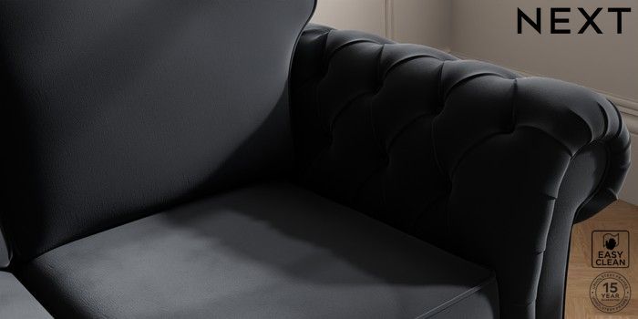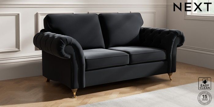 7.2.10 Gosford Highback II Deep Sit 3 Seater Small Sofa Plush Velvet Easy Clean Charcoal Grey Castor - Light | Made Click here to use our website with more accessibility support, for example screen readers