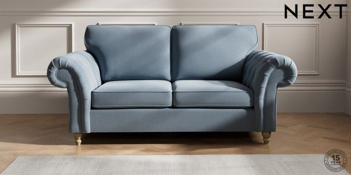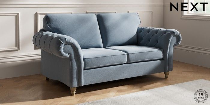 7.2.10 Gosford Highback II Deep Sit 3 Seater Small Sofa Relaxed Linen Look Mid Blue Low Turned - Light | Made Click here to use our website with more accessibility support, for example screen readers