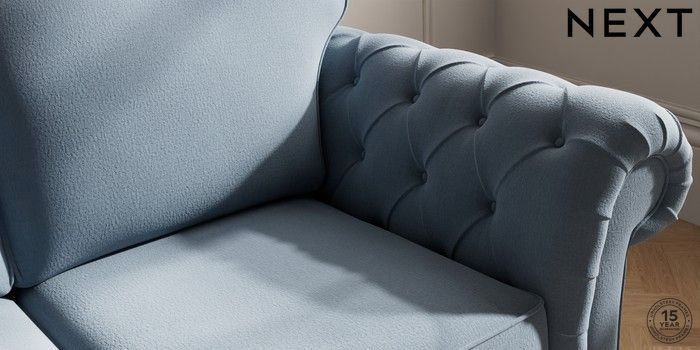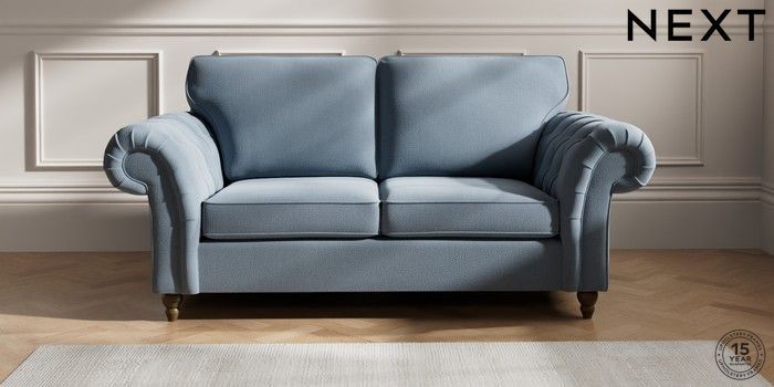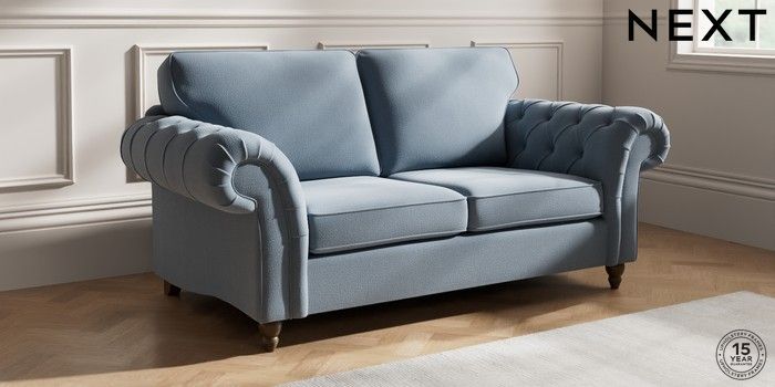 7.2.10 Gosford Highback II Deep Sit 3 Seater Small Sofa Relaxed Linen Look Mid Blue Low Turned - Mid | Made Click here to use our website with more accessibility support, for example screen readers