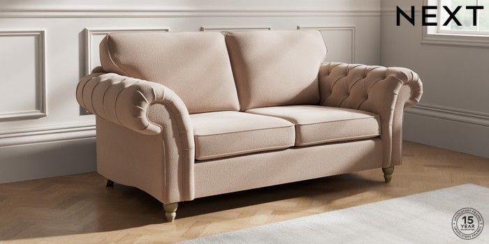 7.2.10 Gosford Highback II Deep Sit 3 Seater Small Sofa Relaxed Linen Look Mid Natural Low Turned - Light | Made Click here to use our website with more accessibility support, for example screen readers