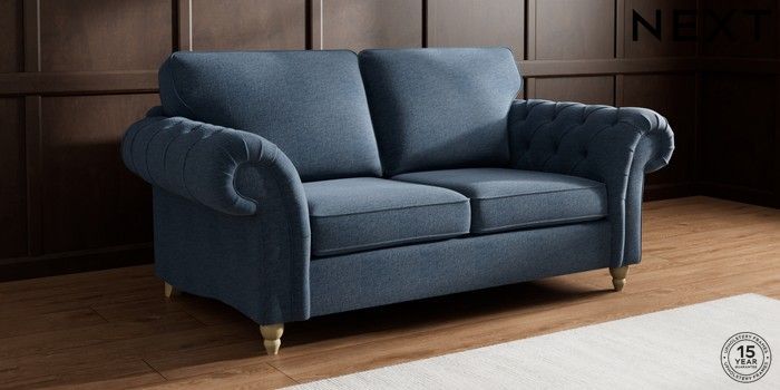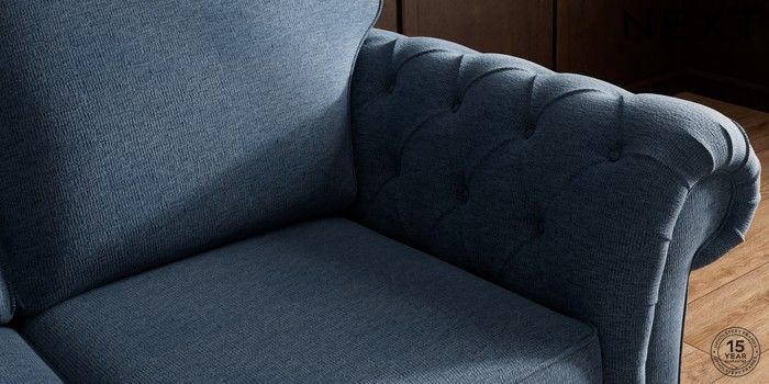 7.2.10 Gosford Highback II Deep Sit 3 Seater Small Sofa Ripple Chenille Dark Blue Low Turned - Light | Made Click here to use our website with more accessibility support, for example screen readers
