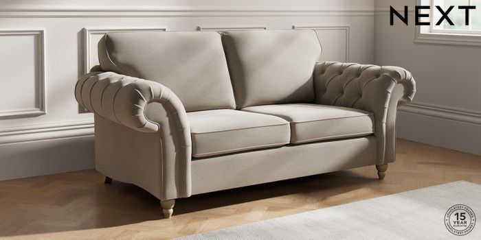 7.2.10 Gosford Highback II Deep Sit 3 Seater Small Sofa Ripple Chenille Light Natural Low Turned - Light | Made Click here to use our website with more accessibility support, for example screen readers