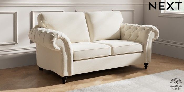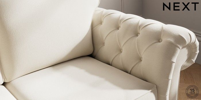 7.2.10 Gosford Highback II Deep Sit 3 Seater Small Sofa Ripple Chenille Oyster Low Turned - Dark | Made Click here to use our website with more accessibility support, for example screen readers