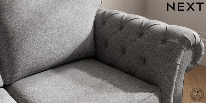 7.2.10 Gosford Highback II Deep Sit 3 Seater Small Sofa Studio Chenille Mid Grey Low Turned - Dark | Made Click here to use our website with more accessibility support, for example screen readers