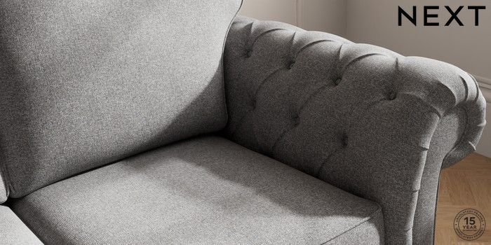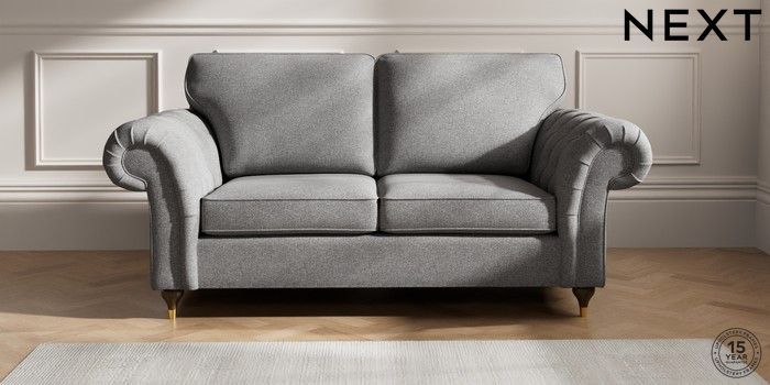 7.2.10 Gosford Highback II Deep Sit 3 Seater Small Sofa Studio Chenille Mid Grey Modern Turned Metal Cap - Mid | Made Click here to use our website with more accessibility support, for example screen readers
