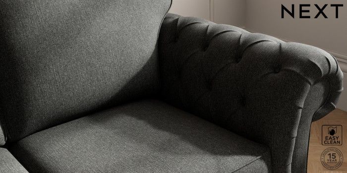 7.2.10 Gosford Highback II Deep Sit 3 Seater Small Sofa Tweedy Blend Easy Clean Charcoal Grey Low Turned - Light | Made Click here to use our website with more accessibility support, for example screen readers