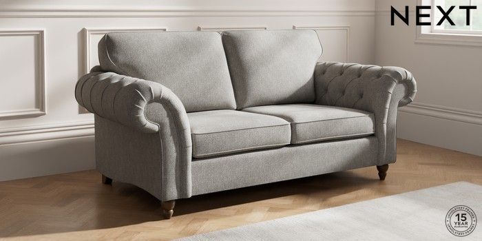7.2.10 Gosford Highback II Deep Sit 3 Seater Small Sofa Tweedy Chenille Mid Grey Low Turned - Mid | Made Click here to use our website with more accessibility support, for example screen readers