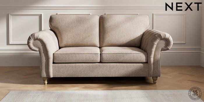 7.2.10 Gosford Highback II Deep Sit 3 Seater Small Sofa Tweedy Chenille Mid Natural Low Turned - Light | Made Click here to use our website with more accessibility support, for example screen readers
