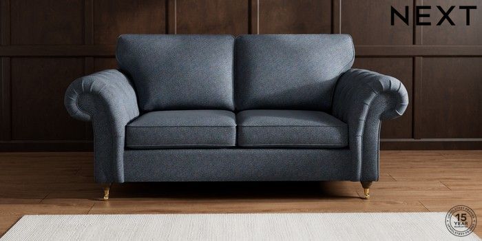 7.2.10 Gosford Highback II Deep Sit 3 Seater Small Sofa Tweedy Chenille Navy Blue Castor - Mid | Made Click here to use our website with more accessibility support, for example screen readers
