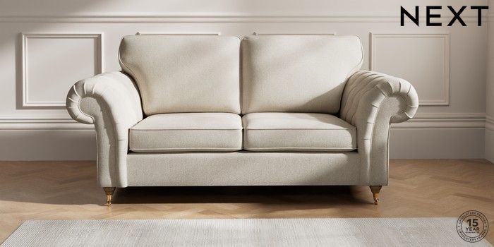 7.2.10 Gosford Highback II Deep Sit 3 Seater Small Sofa Tweedy Chenille Oyster Castor - Light | Made Click here to use our website with more accessibility support, for example screen readers