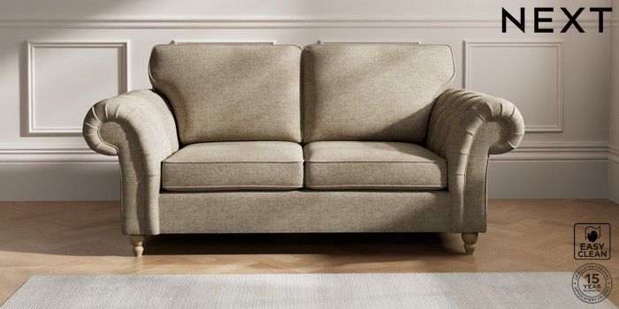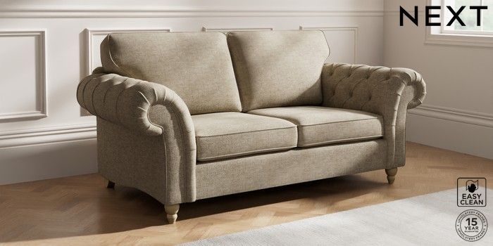 7.2.10 Gosford Highback II Deep Sit 3 Seater Small Sofa Woven Chenille Easy Clean Mid Natural Low Turned - Light | Made Click here to use our website with more accessibility support, for example screen readers